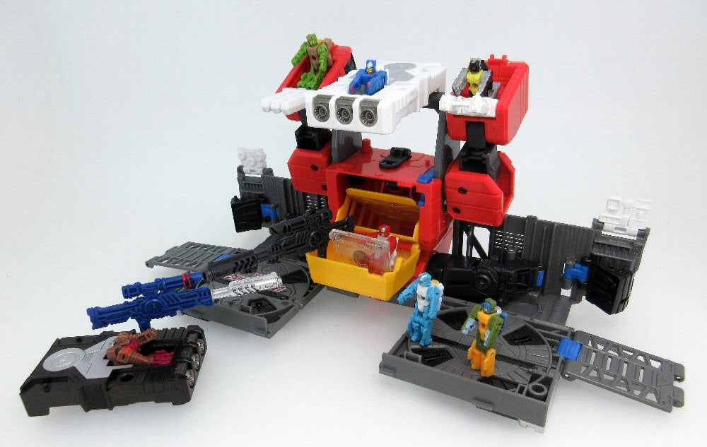 ヘッ ドマスター機能は別売のLG-21以降の同シリーズとも連動して、クロスヘッドオン(頭部交換合体)やビークルでの搭乗遊びの互換性やマイクロピンによる ポジション固 定等、同シリーズの基地に変形するアイテムとも連動して遊べる事が出来、シリーズを揃える事で、遊びがワイドに広がります。■クロスヘッドオンの例
