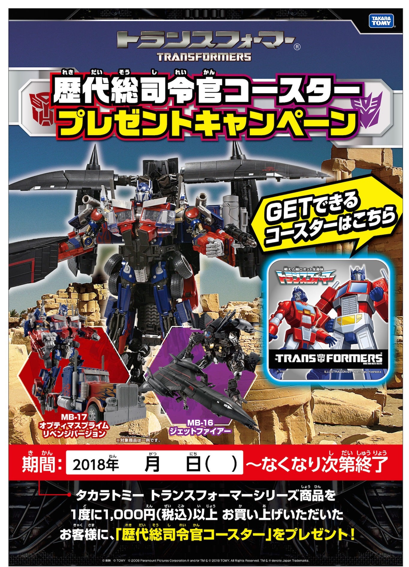 ■Joshinキッズランド 各店 ※一部対象外店舗あり ・キャンペーン開始日 : 2018年3月31日(土)~ なくなり次第終了 ・コースターの種類 : ロディマスコンボイ