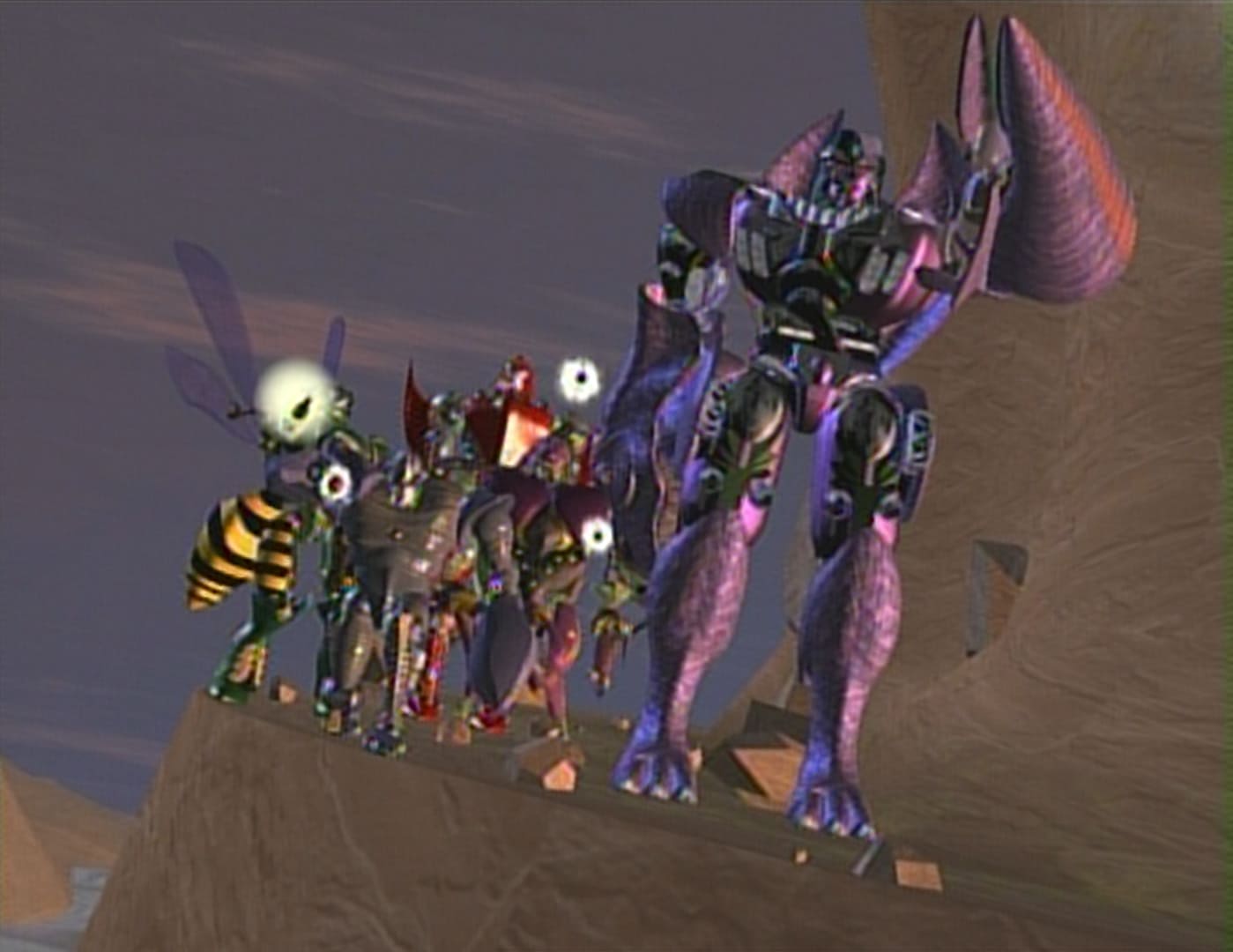 とつぜんデストロンをやめたと宣言して、ダイノボットがサイバトロンの前に現れた。しかもダイノボットはコンボイに、司令官の座をよこせと一方的に決闘を挑んでくる。正義のサイバトロンとしてそんな申し出を受けるわけにはいかないと拒むコンボイだったが、強い相手を前に燃えるダイノボットは聞く耳を持たない。仕方なくコンボイも決闘に応じるのだった。だが決闘のさなか、メガトロン率いるデストロンのいっせい攻撃が2体を襲う!!